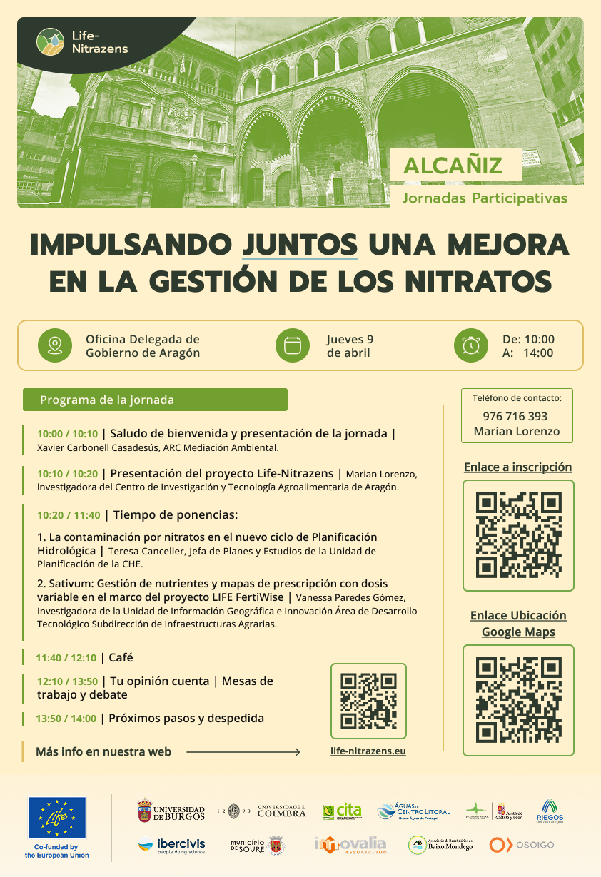 La quinta de las jornadas participativas de Life-Nitrazens tendrá lugar en Alcañiz el próximo jueves 9 de abril, en la Oficina Comarcal Agroambiental. Esperamos tu participación para conocer tu experiencia y tus ideas.