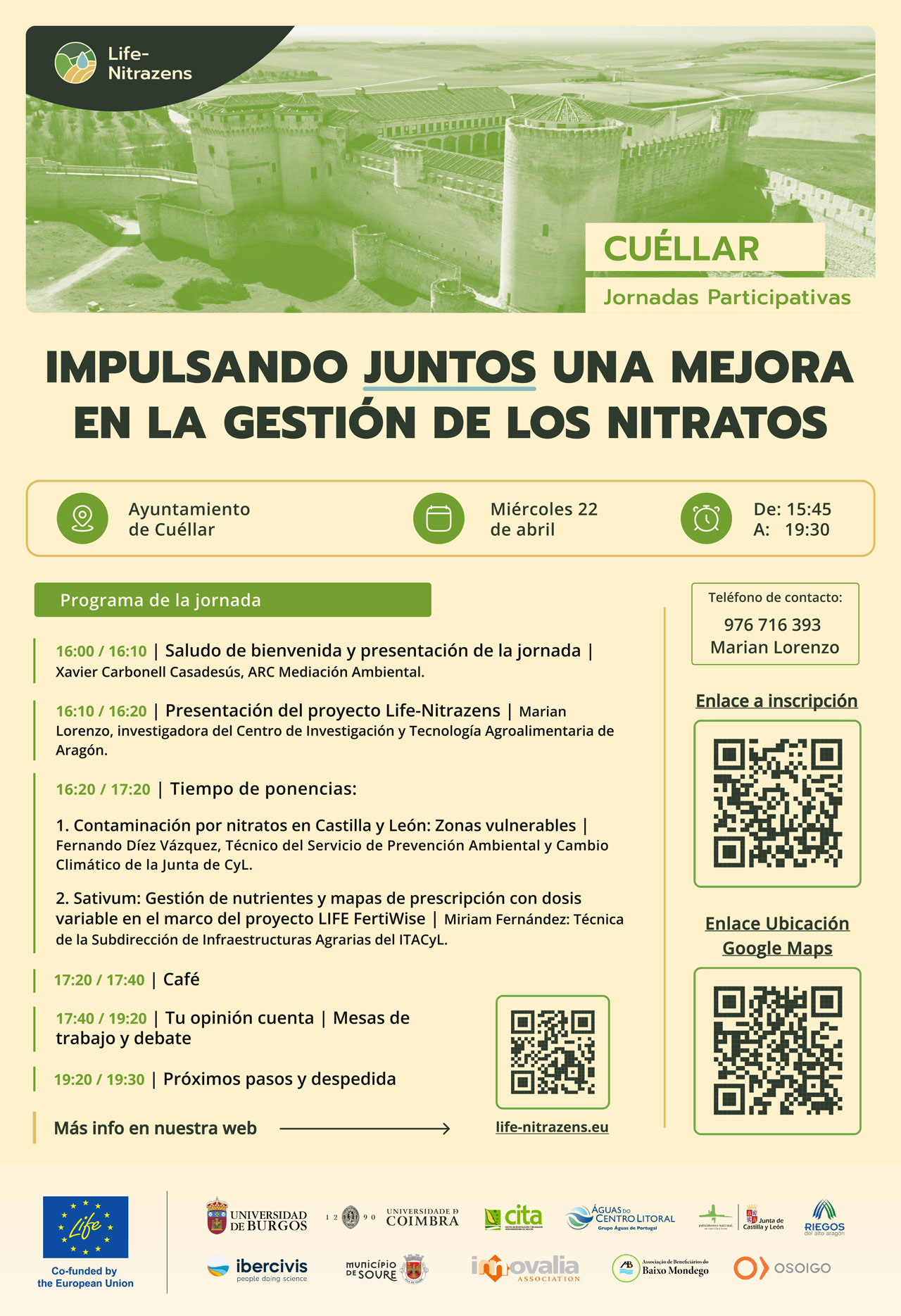 Te esperamos en Cuéllar el próximo miércoles 22 de abril en una de las jornadas participativas que Life-Nitrazens tiene en Castilla Y León. Este es el programa de la jornada: